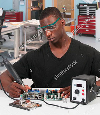 Cuidado al soldar placas energizadas (el soldador está a tierra)