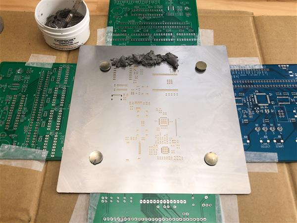 Se usa un stencil para ubicar pasta de soldar (estaño+flux)